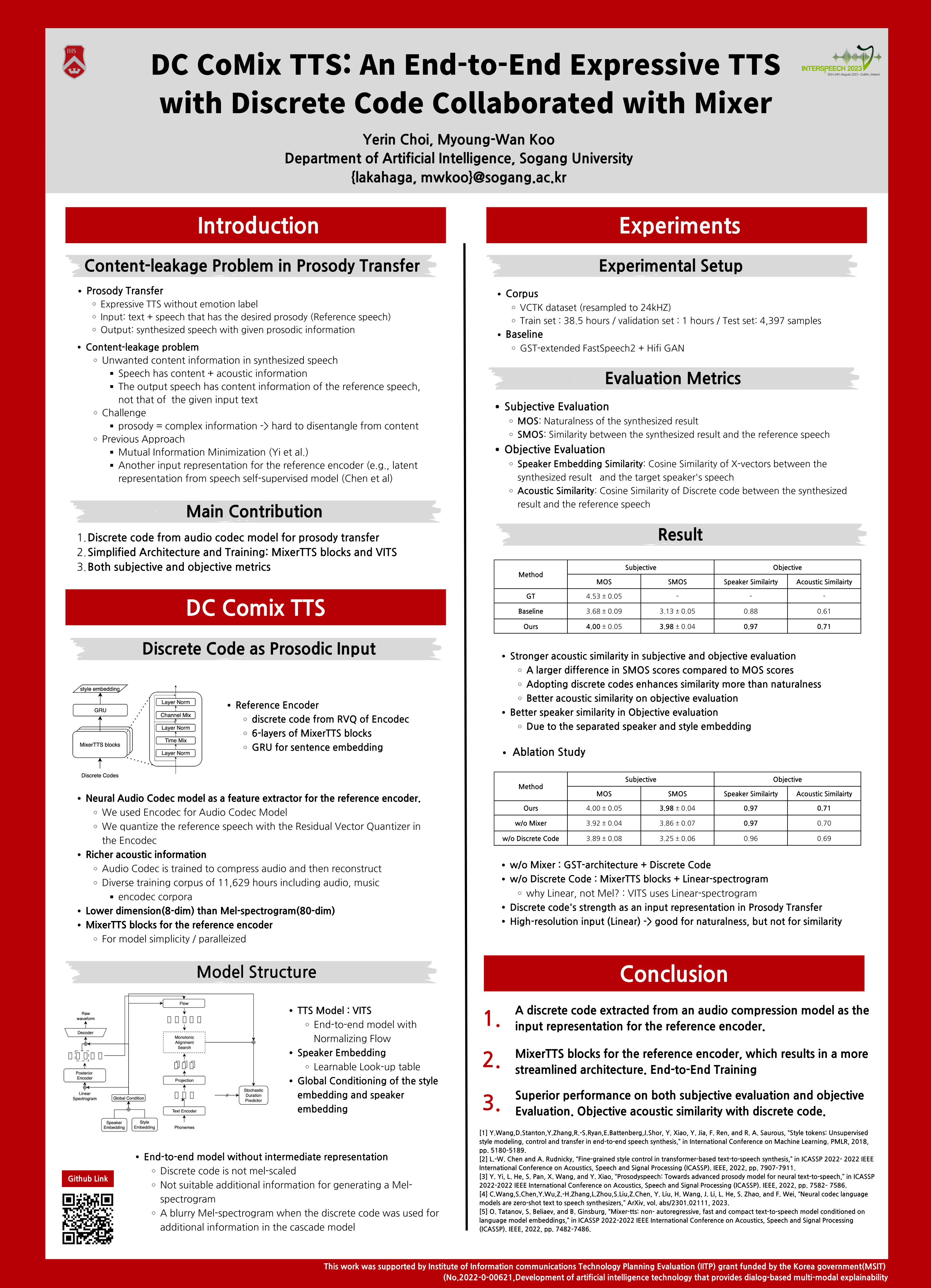 DC CoMix TTS: An End-to-End Expressive TTS with Discrete Code Collaborated with MixerPublished in Interspeech 2023, 2023First author. View Paper Code Poster